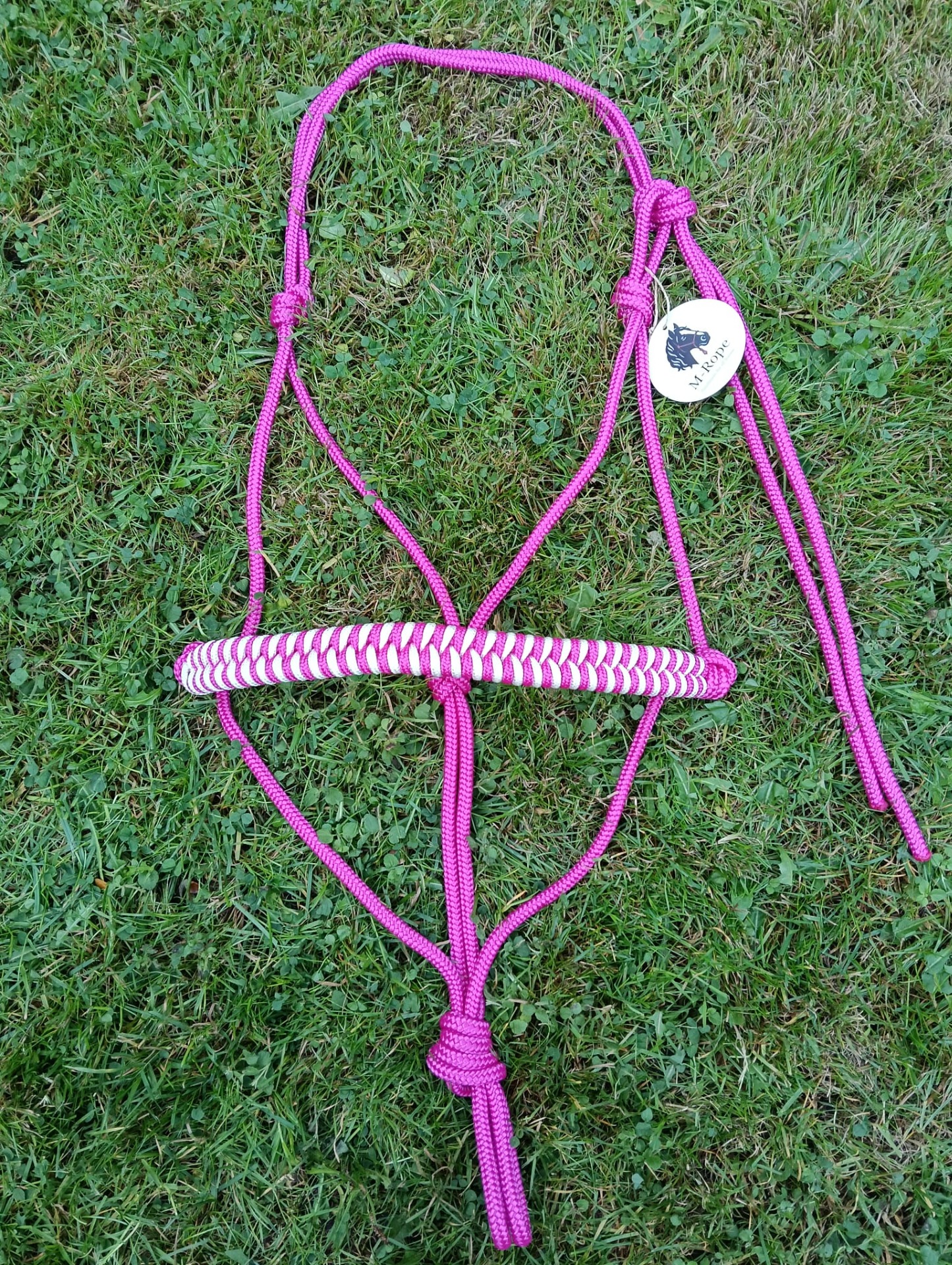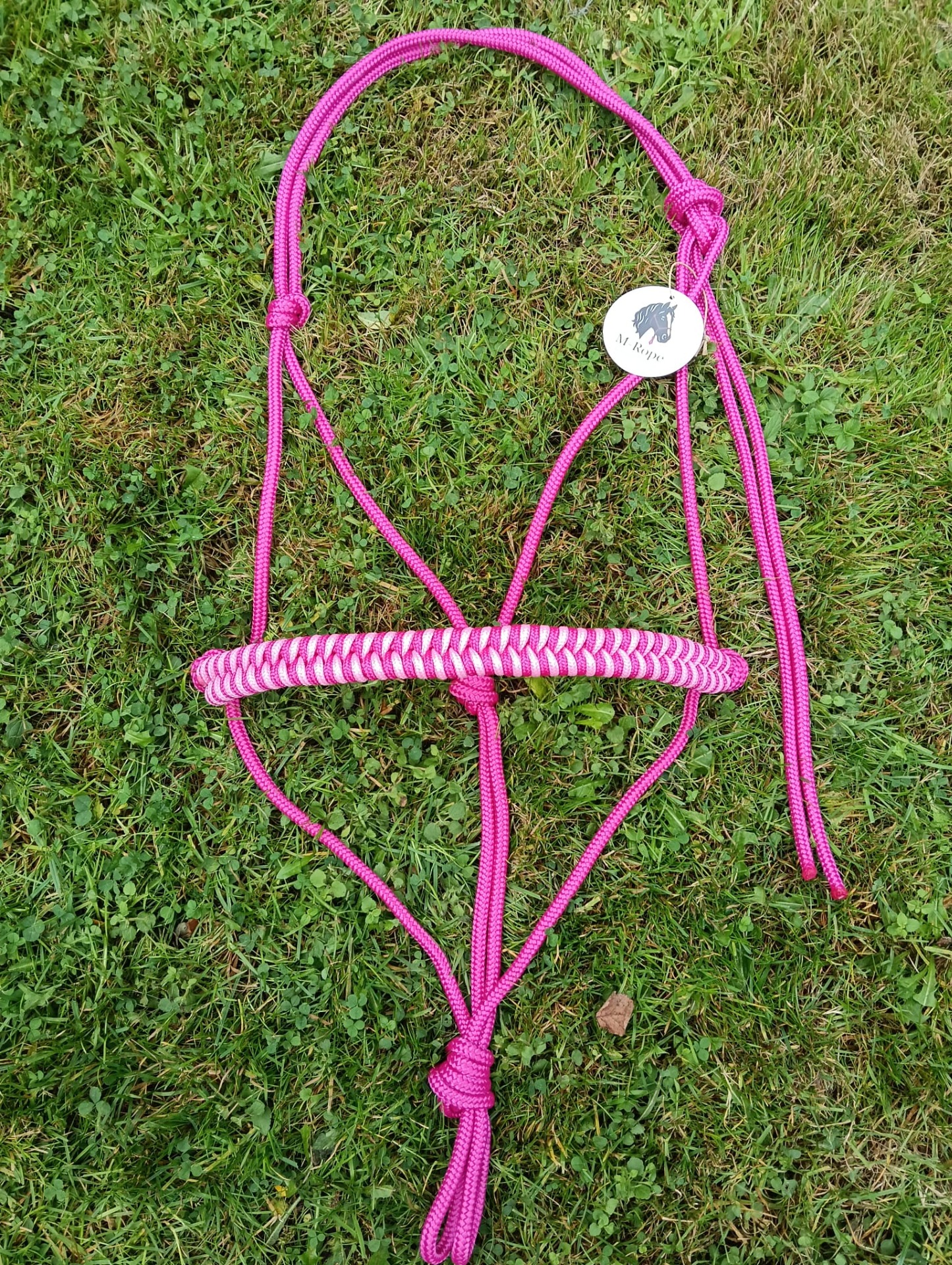 Trekpaard: 8mm fuchsia touwhalster met visgraat neusband
