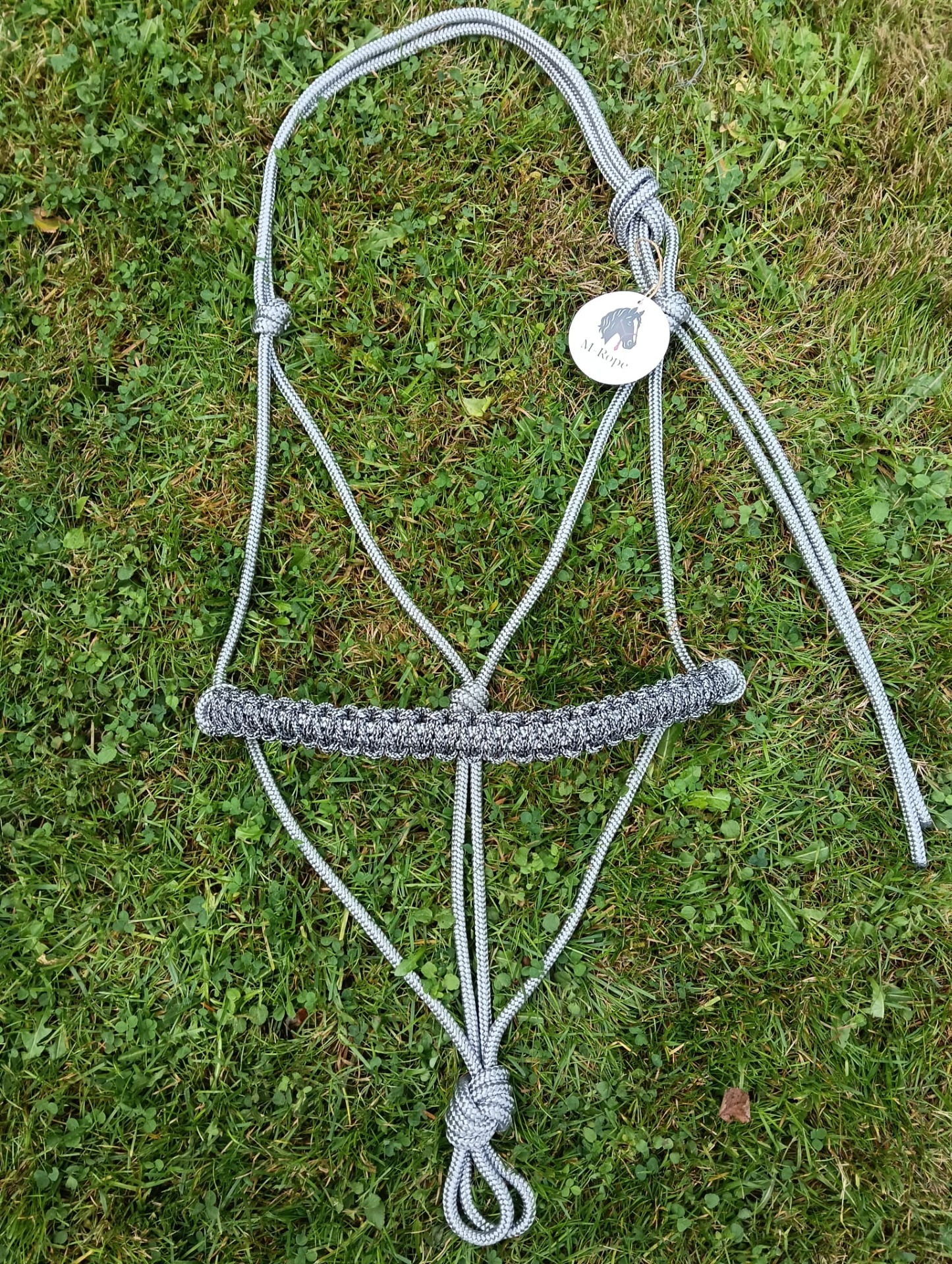 Trekpaard: 8mm grijs touwhalster met nali neusband