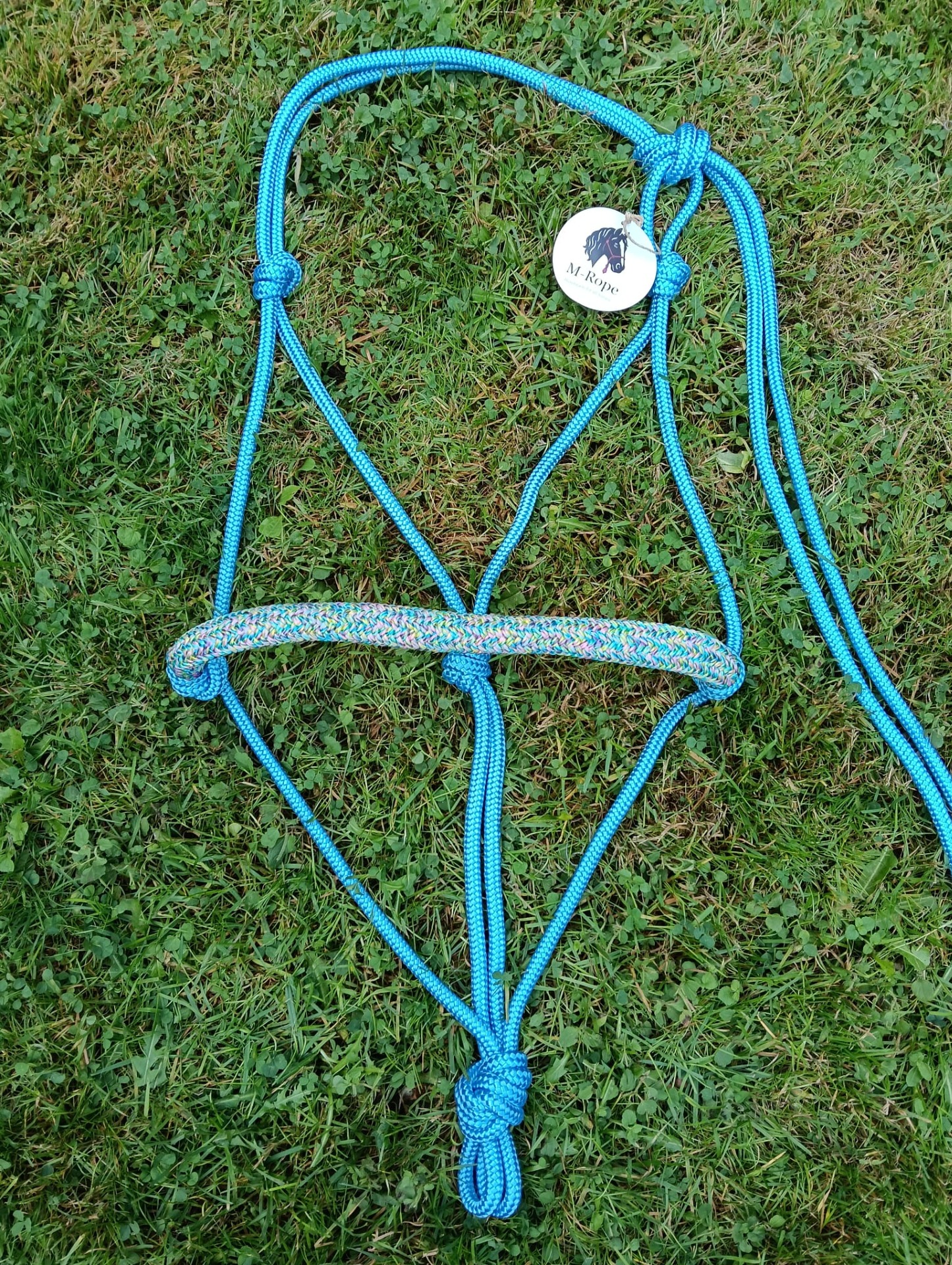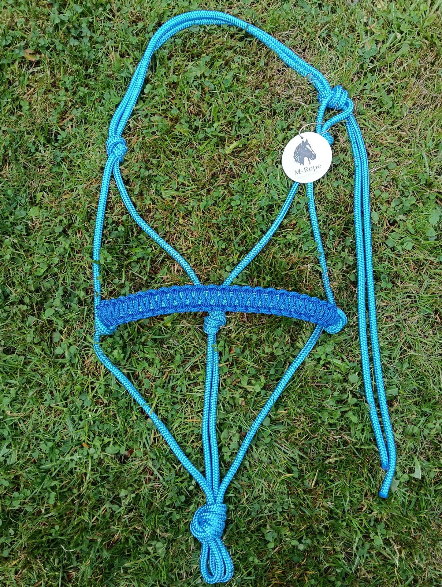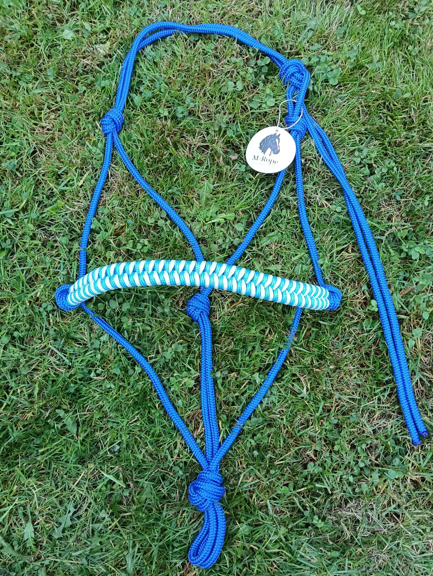 Trekpaard: 8mm blauw touwhalster met basic neusband.