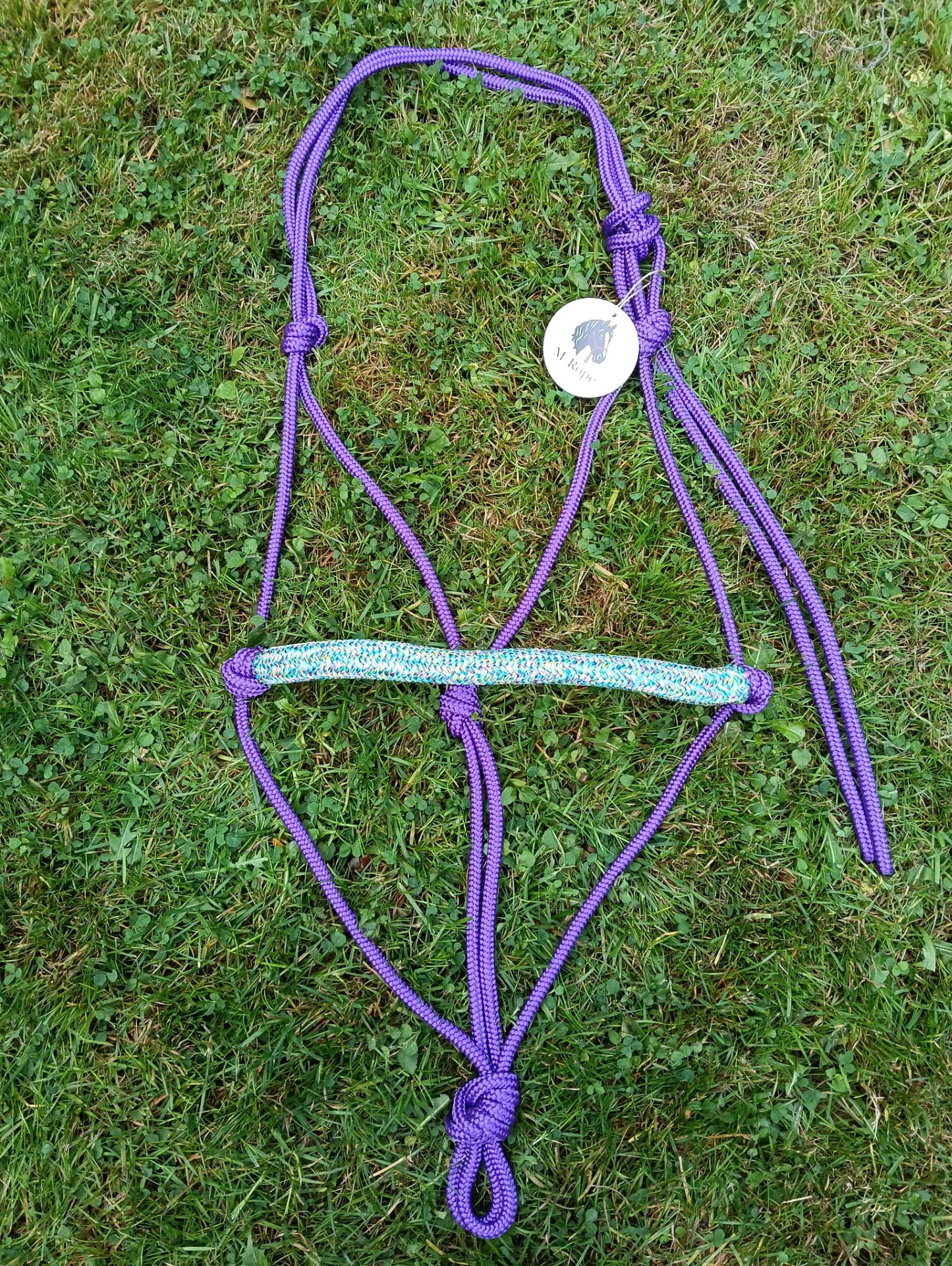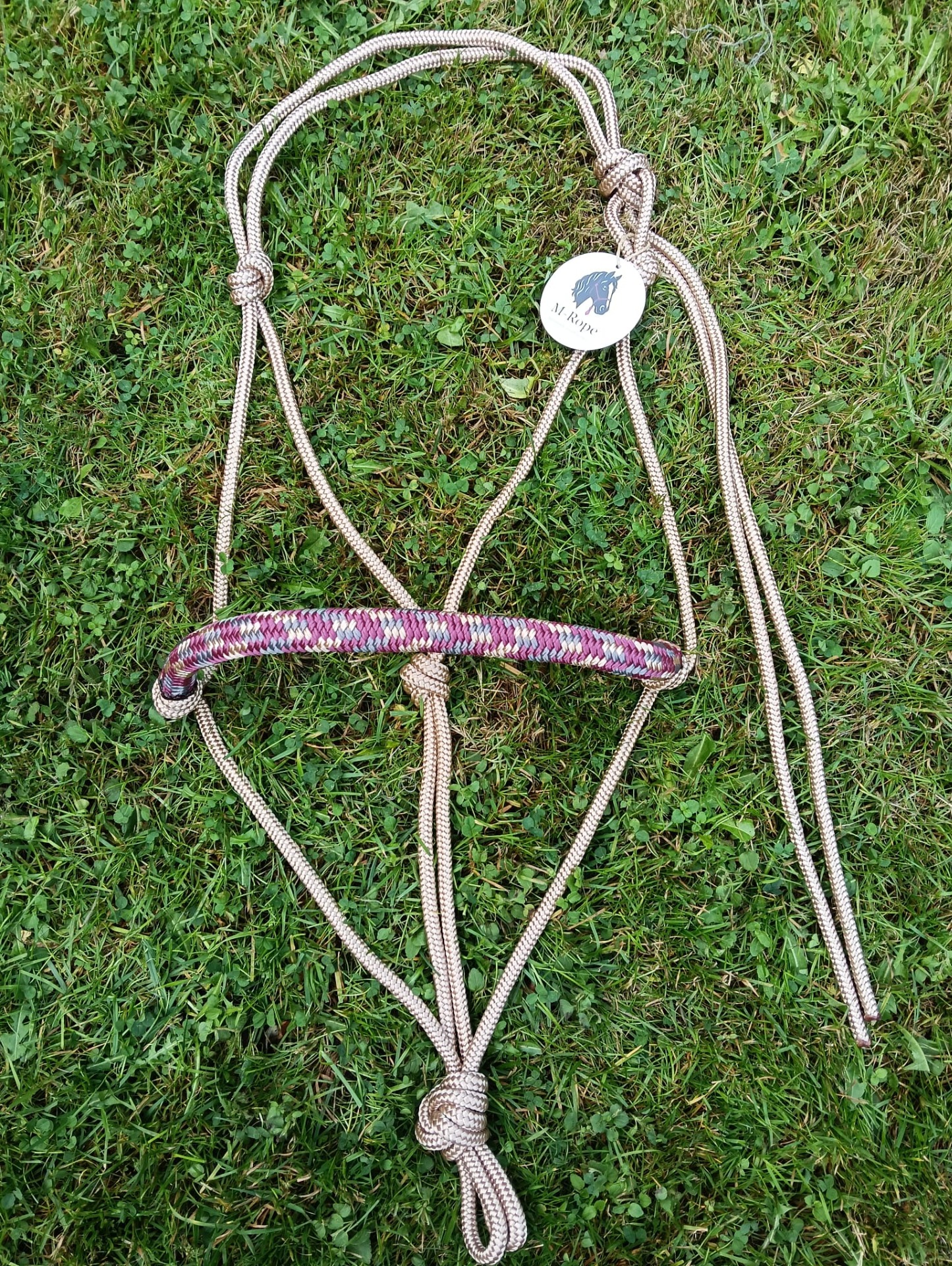 Trekpaard: 8mm donkerpaars touwhalster met basic neusband