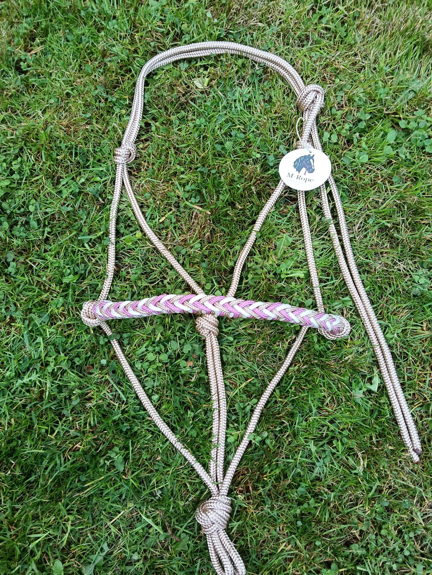 Trekpaard: 8mm roos touwhalster met nali neusband