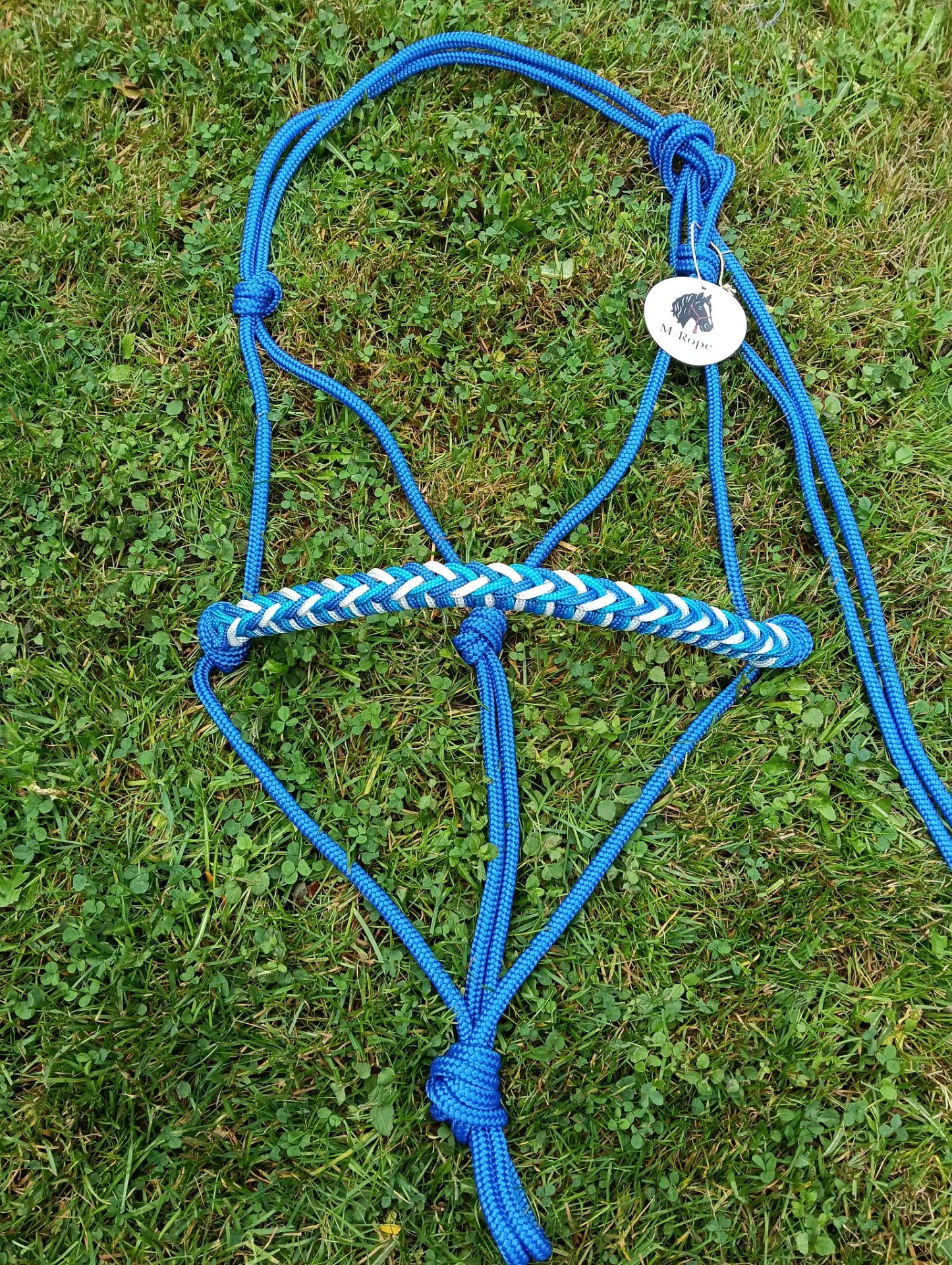 Trekpaard: 8mm royal blauw touwhalster met vlecht neusband