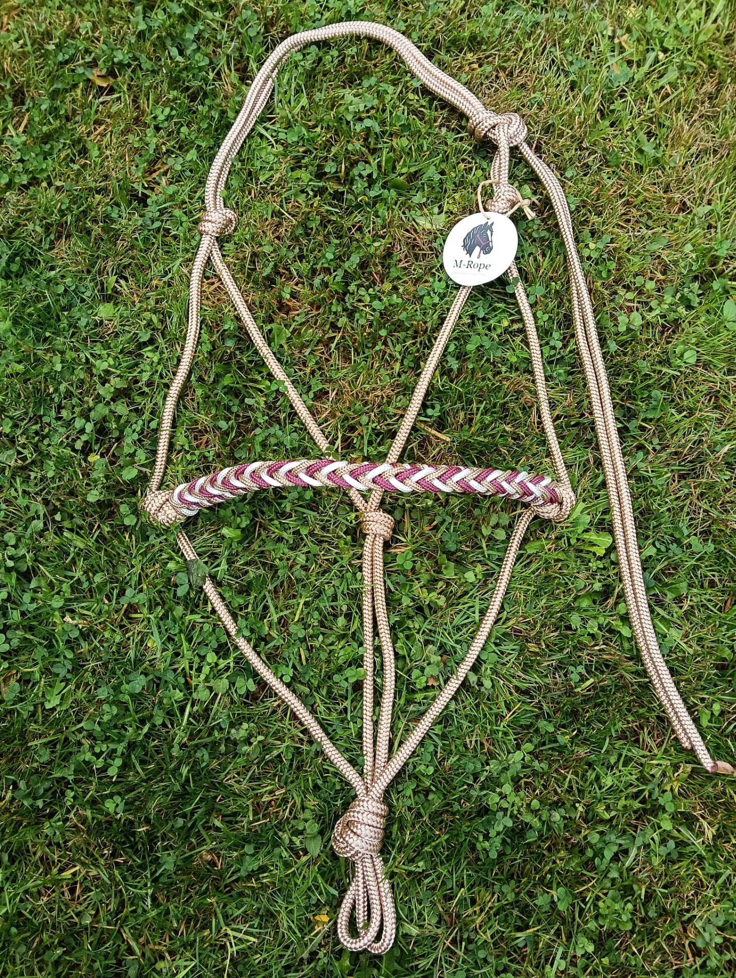 Trekpaard: 8mm beige touwhalster met vlecht neusband
