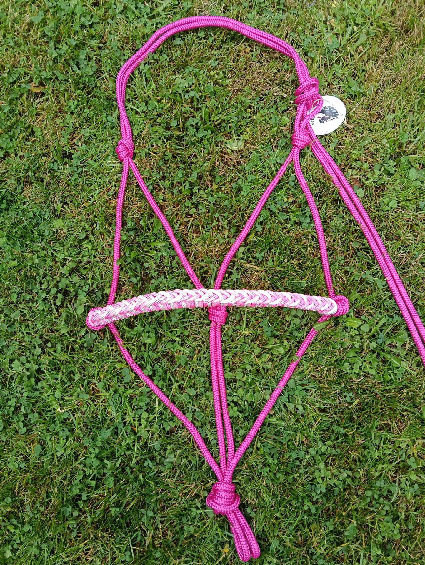 Trekpaard: 8mm fuchsia touwhalster met vlecht neusband