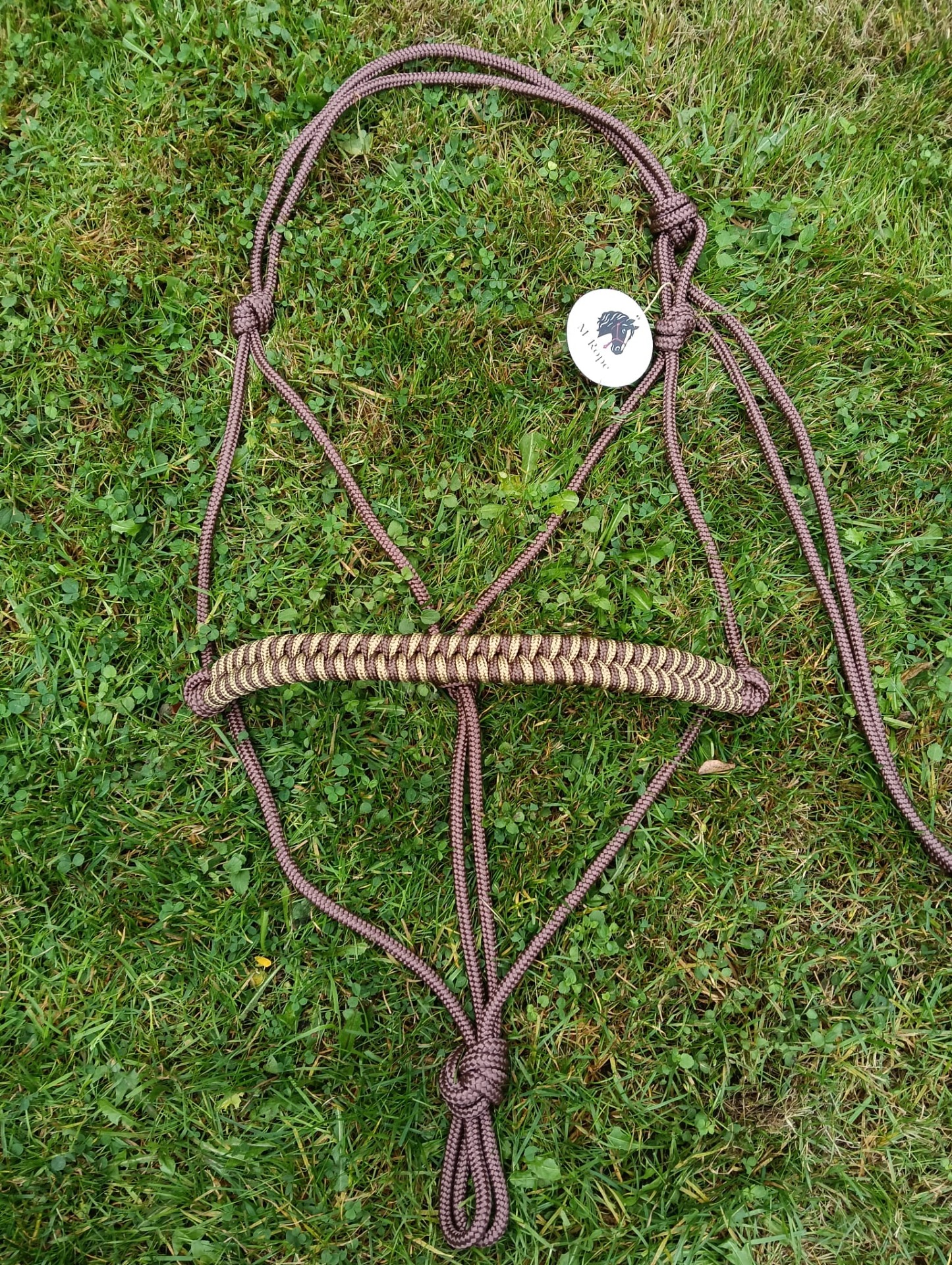 Trekpaard: 8mm bruin touwhalster met visgraat neusband.