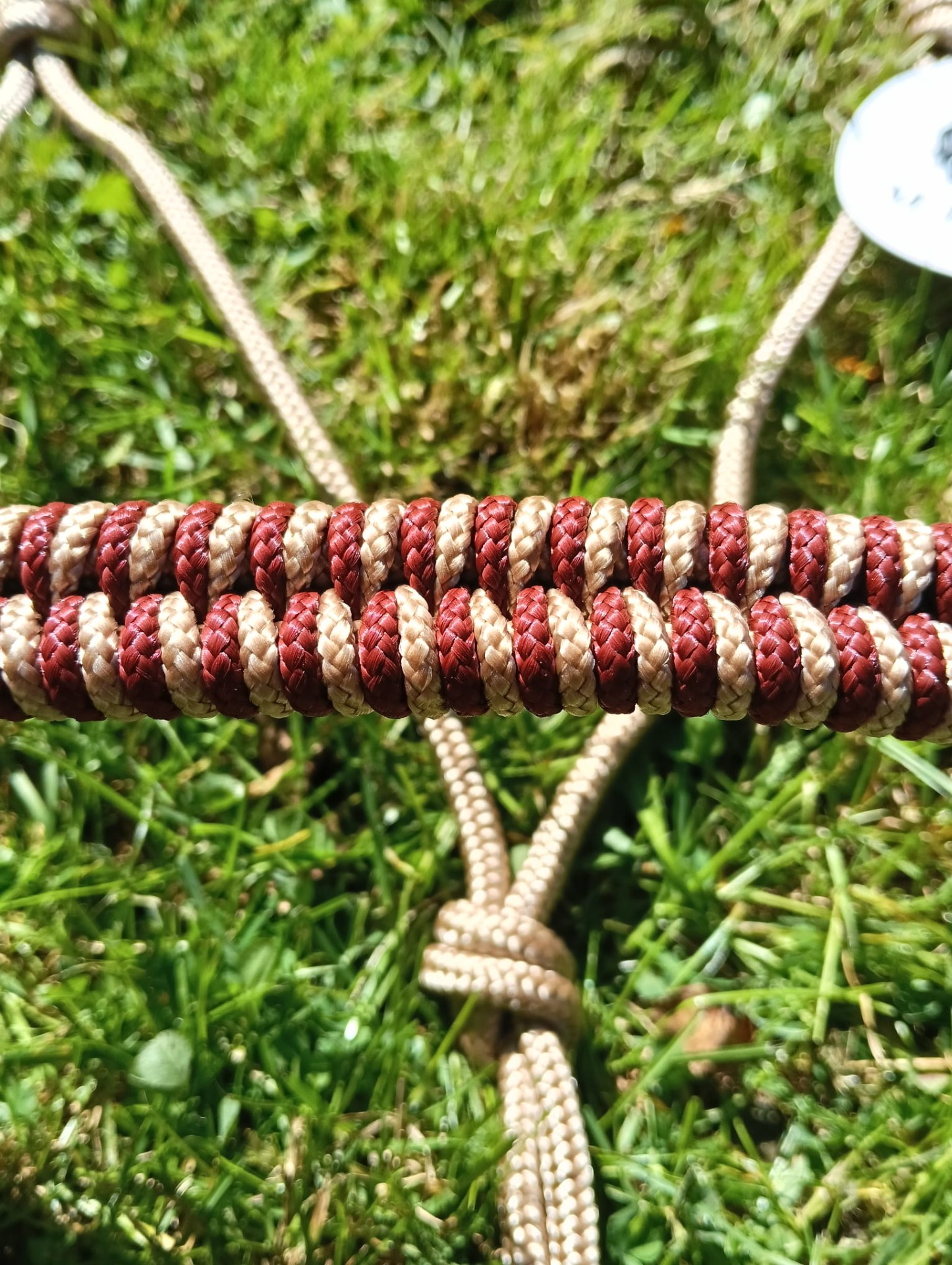 6mm beige touwhalster met visgraat neusband in de kleuren beige en geroosterd bordeaux.