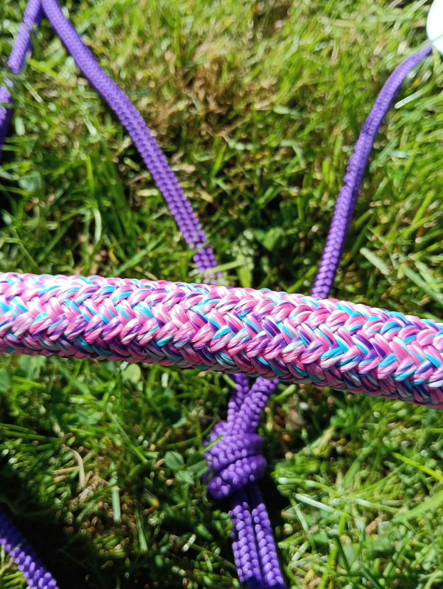 6mm donkerpaars touwhalster met basic neusband in de kleur pastel.