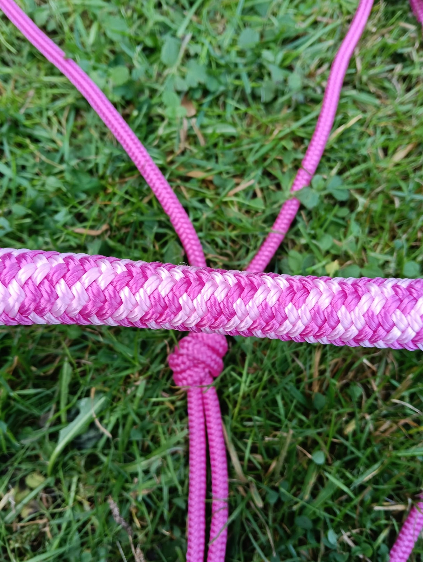 6mm fuchsia touwhalster met basic neusband in de kleur roos gemengd.