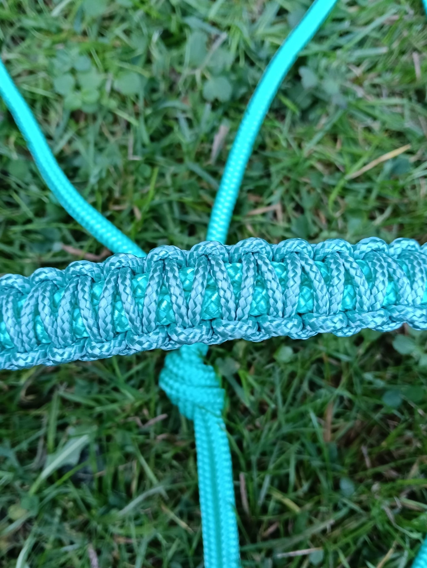 6mm licht munt touwhalster met nali neusband in de kleur zeegroen.