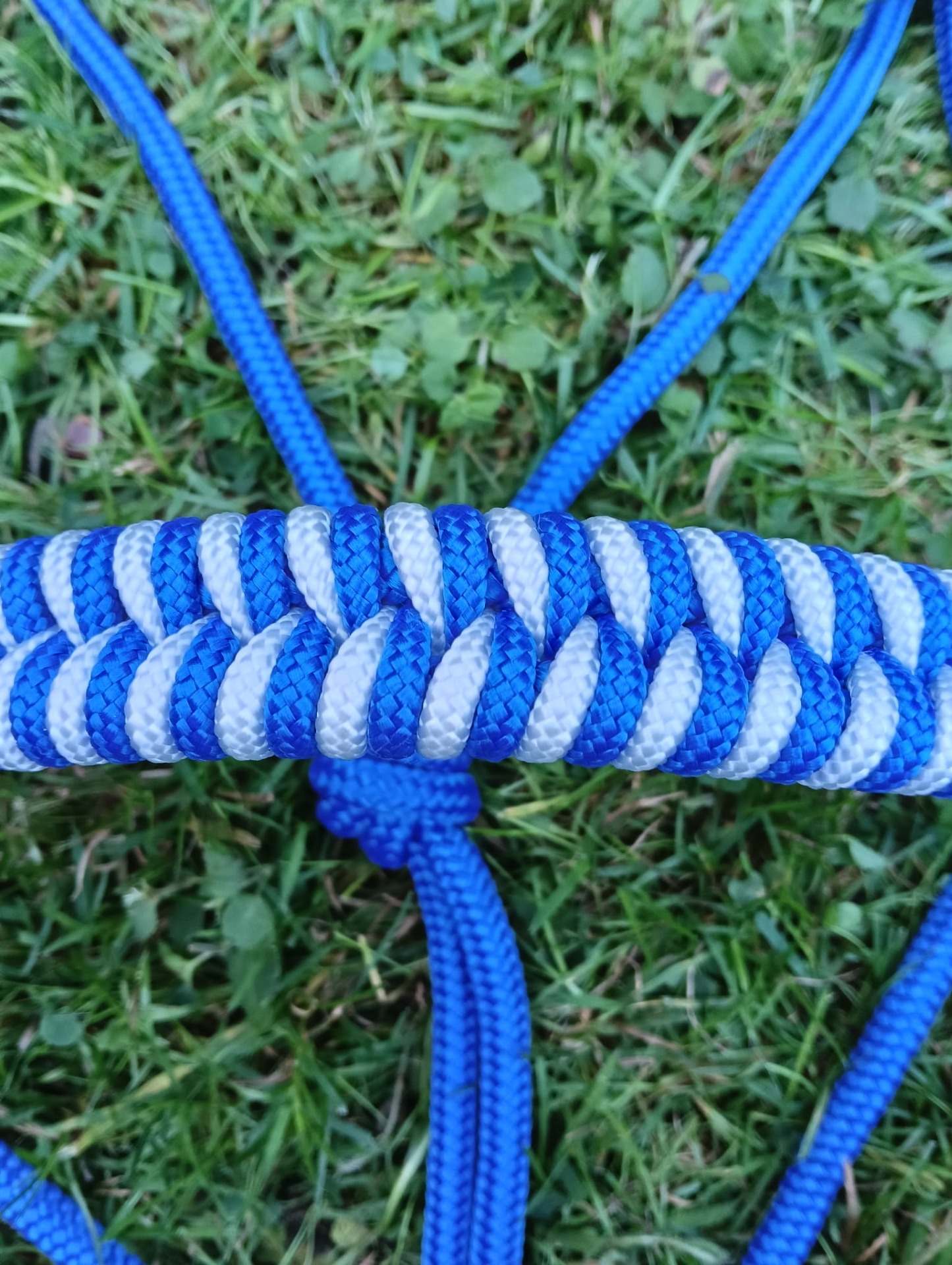 8mm royal blauw touwhalster met visgraat neusband in de kleuren royal blauw en wit.
