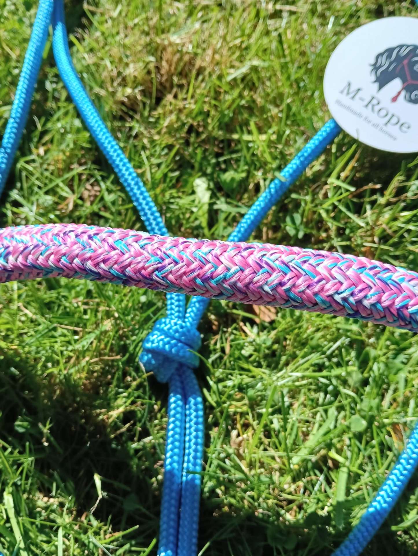 6mm blauw touwhalster met basic neusband in de kleur pastel.