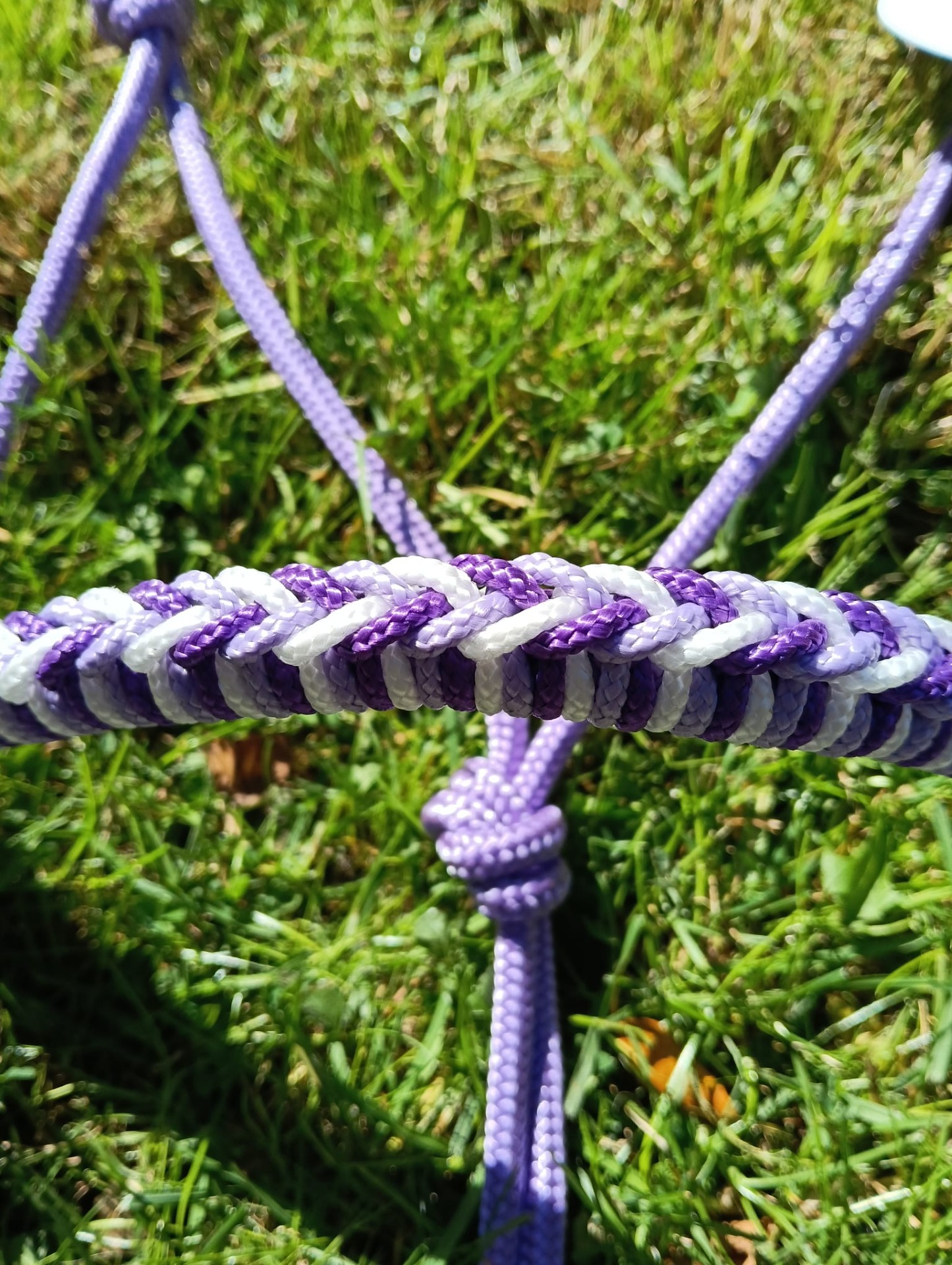 6mm lila touwhalster met vlecht neusband in de kleuren lila, donkerpaars en wit.