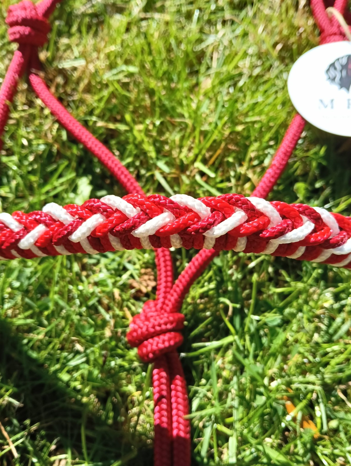 6mm framboos touwhalster met vlecht neusband in de kleuren framboos, rood en wit.