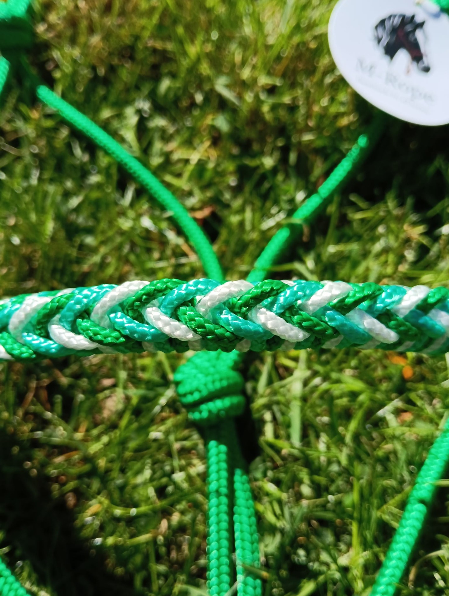 6mm gras touwhalster met vlecht neusband in de kleuren gras, lichtblauw en wit.