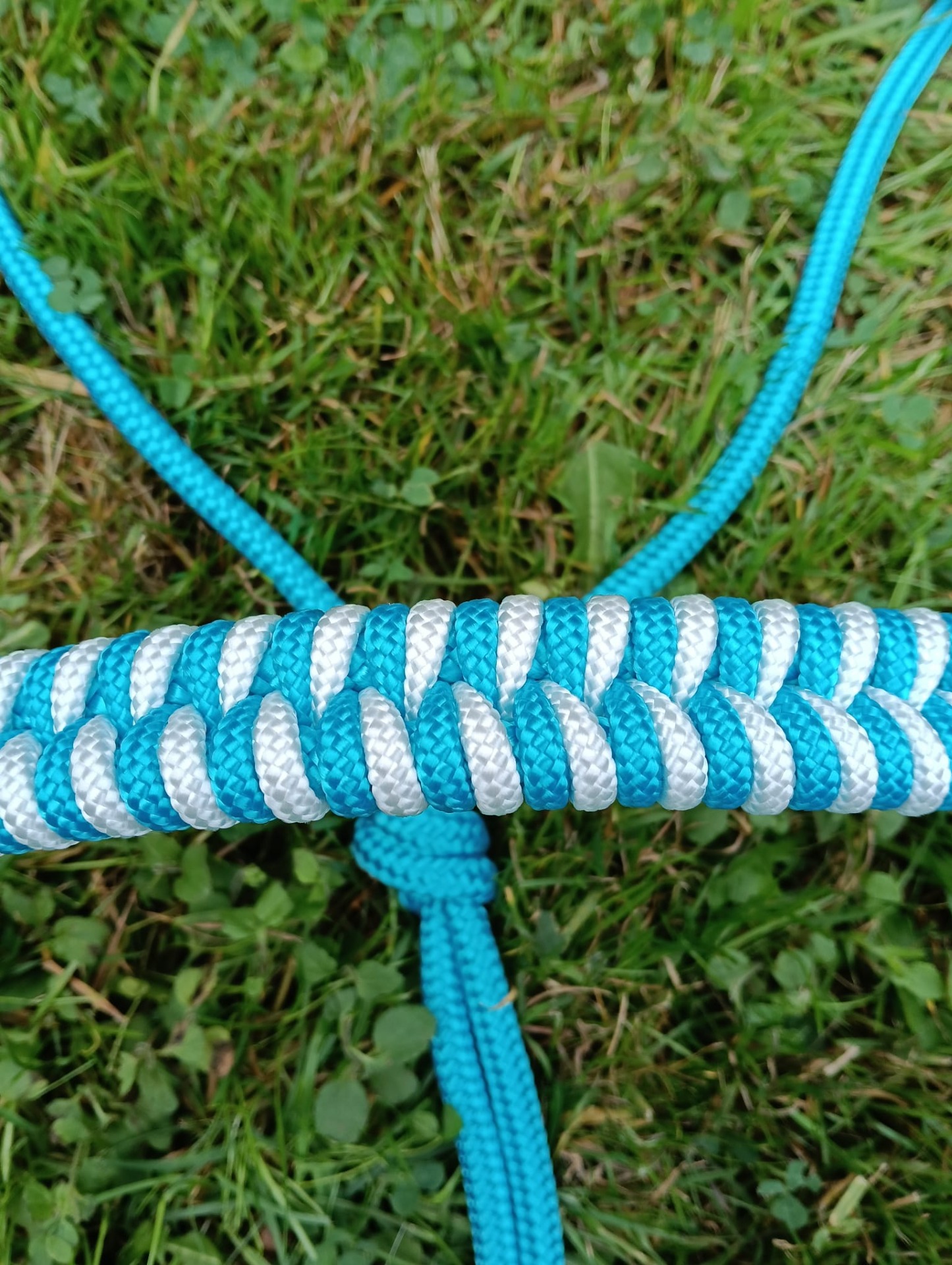 Trekpaard: 8mm blauw touwhalster met visgraat neusband