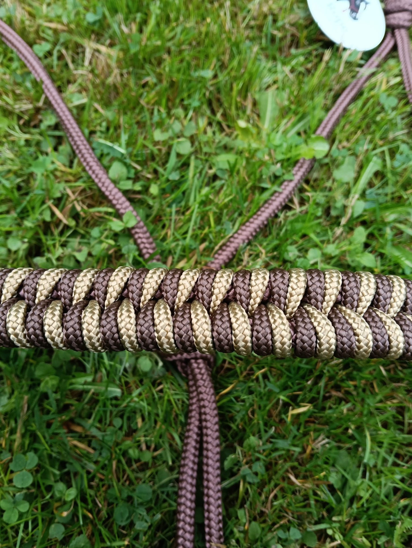 Trekpaard: 8mm bruin touwhalster met visgraat neusband.