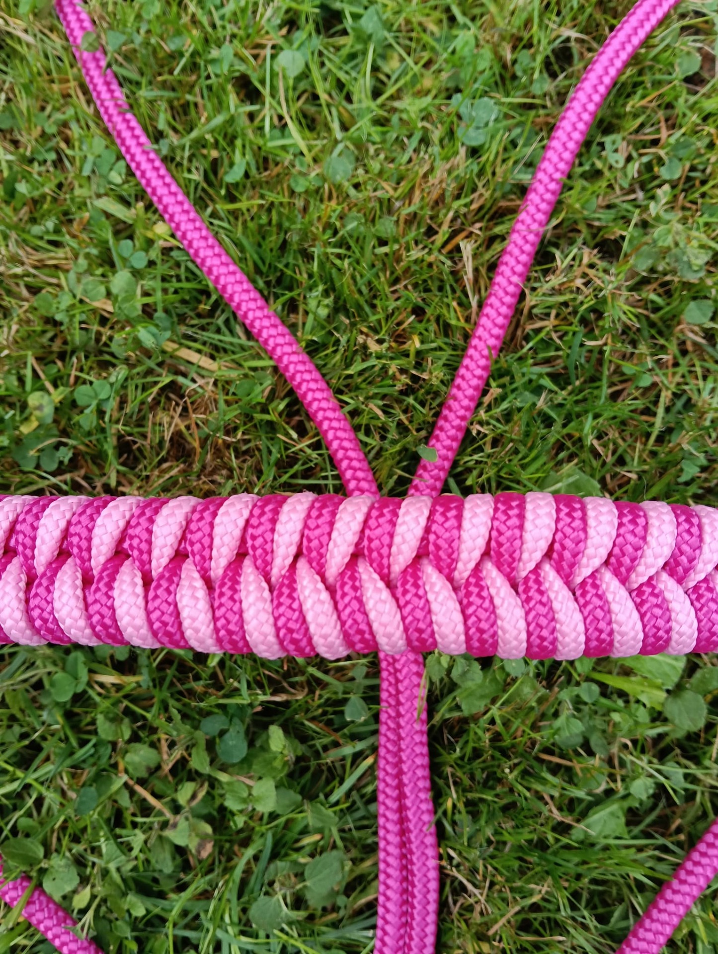 Trekpaard: 8mm fuchsia touwhalster met visgraat neusband