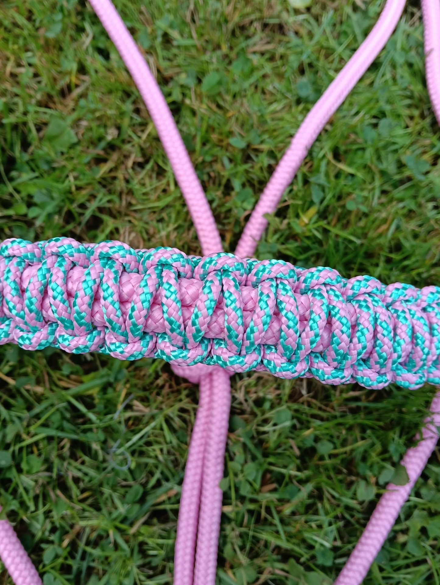 Trekpaard: 8mm roos touwhalster met nali neusband